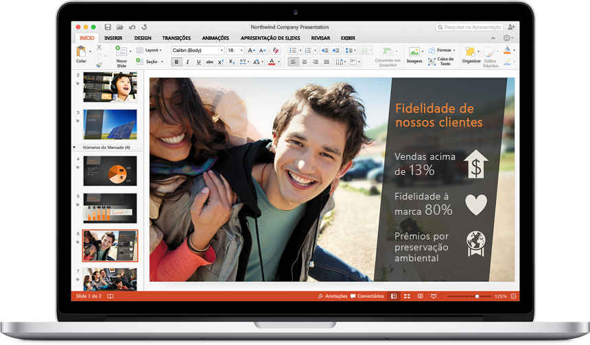 O software adiciona novas transições entre slides, que permitem criar efeitos visuais mais interessantes durante apresentações, e um painel de animações que possibilita gerenciar todos os efeitos em um só lugar. Além disso, o PowerPoint 2016 tem uma função para resolver conflitos entre arquivos para que você possa comparar visualmente e escolher qual versão manter.